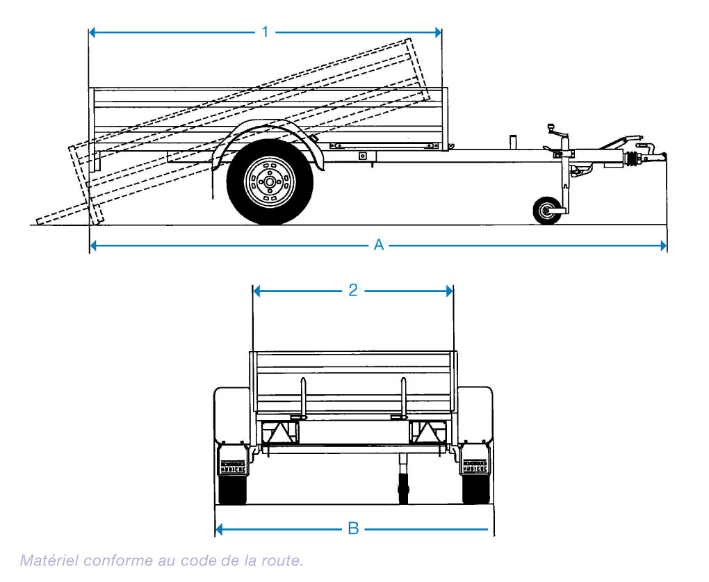 * Indications informelles susceptibles de changement.** Ces remorques non freinées d’un PTAC de 750 Kg doivent obligatoirement être tractées par un véhicule dont le poids à vide est supérieur ou égal à 1 500 Kg.Toujours soucieux d’améliorer sans cesse la qualité de ses matériels, le constructeur se réserve le droit de modifier les caractéristiques figurant sur cette notice sans avis préalable. -
